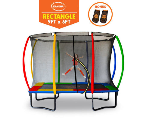 Kahuna 6ft x 9ft Outdoor Rectangular Rainbow Trampoline With Safety Enclosure
