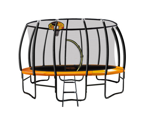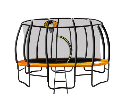 Kahuna 14ft Outdoor Trampoline Kids Children With Safety Enclosure Pad Mat Ladder Basketball Hoop Set - Orange