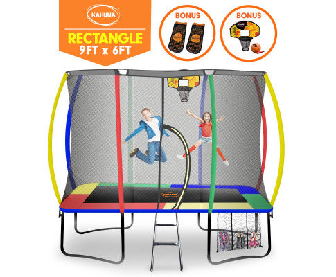 Kahuna 6ft X 9ft Outdoor Rectangular Rainbow Trampoline Safety Enclosure And Basketball Hoop Set