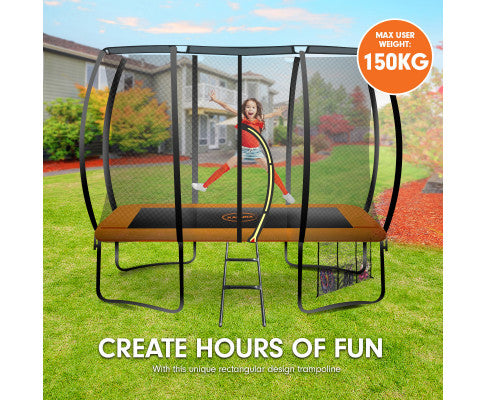 Kahuna 8ft X 11ft Outdoor Rectangular Orange Trampoline with Safety Enclosure.