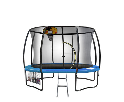 Kahuna 14ft Outdoor Trampoline Kids Children With Safety Enclosure Pad Mat Ladder Basketball Hoop Set - Blue