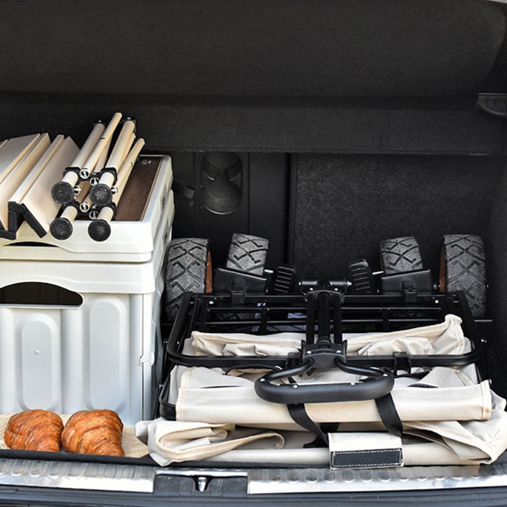 Easy to Fold & Store: All terrain collapsible folding outdoor wagon cart has internal pull rope design, it can be folded in seconds. No need to install, easy to operate and transport. With a compact design this thing folds into a mini size that you can simply fold it with one hand. It is convenient to be stored at home, garage and car boot, and we also offer a carry-on bag for carrying and storing. Space&Labor Saving.