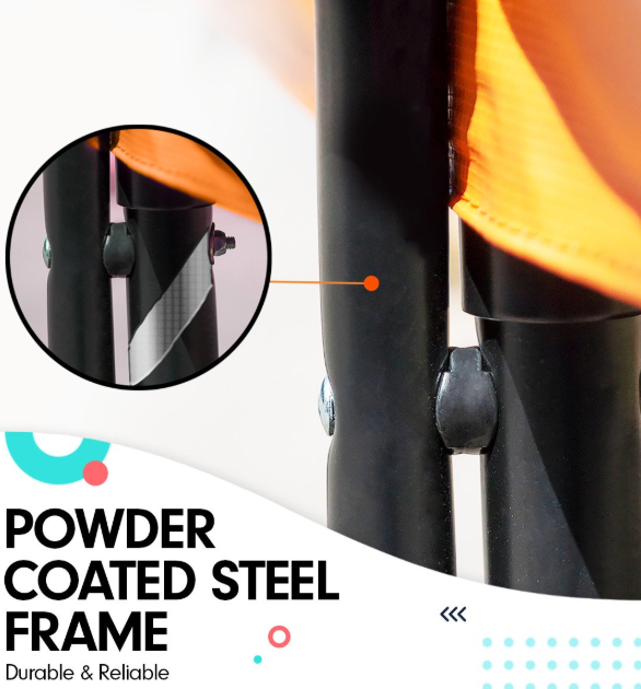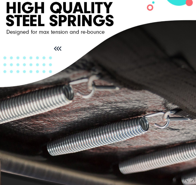 This trampoline uses linked legs for superior stability and structure of the legs also minimizes the tendency for legs to dig into the ground. Legs also feature re-enforced joint bars to enhance strength and stability.